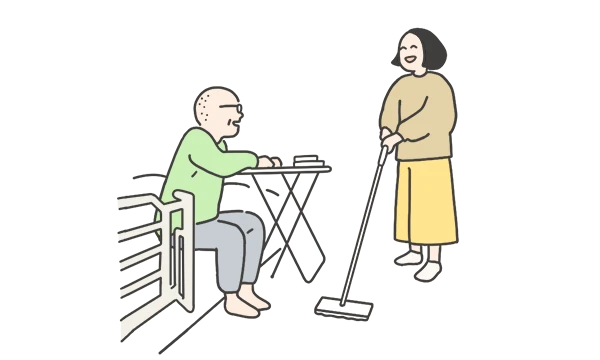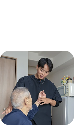 訪問介護は、可能な限り自宅で自立した日常生活を送ることができるよう、介護士が利用者様の自宅を訪問し、食事・排泄・入浴などの介護(身体介護)や、掃除・洗濯・買い物・調理などの生活の支援(生活援助)を行います。